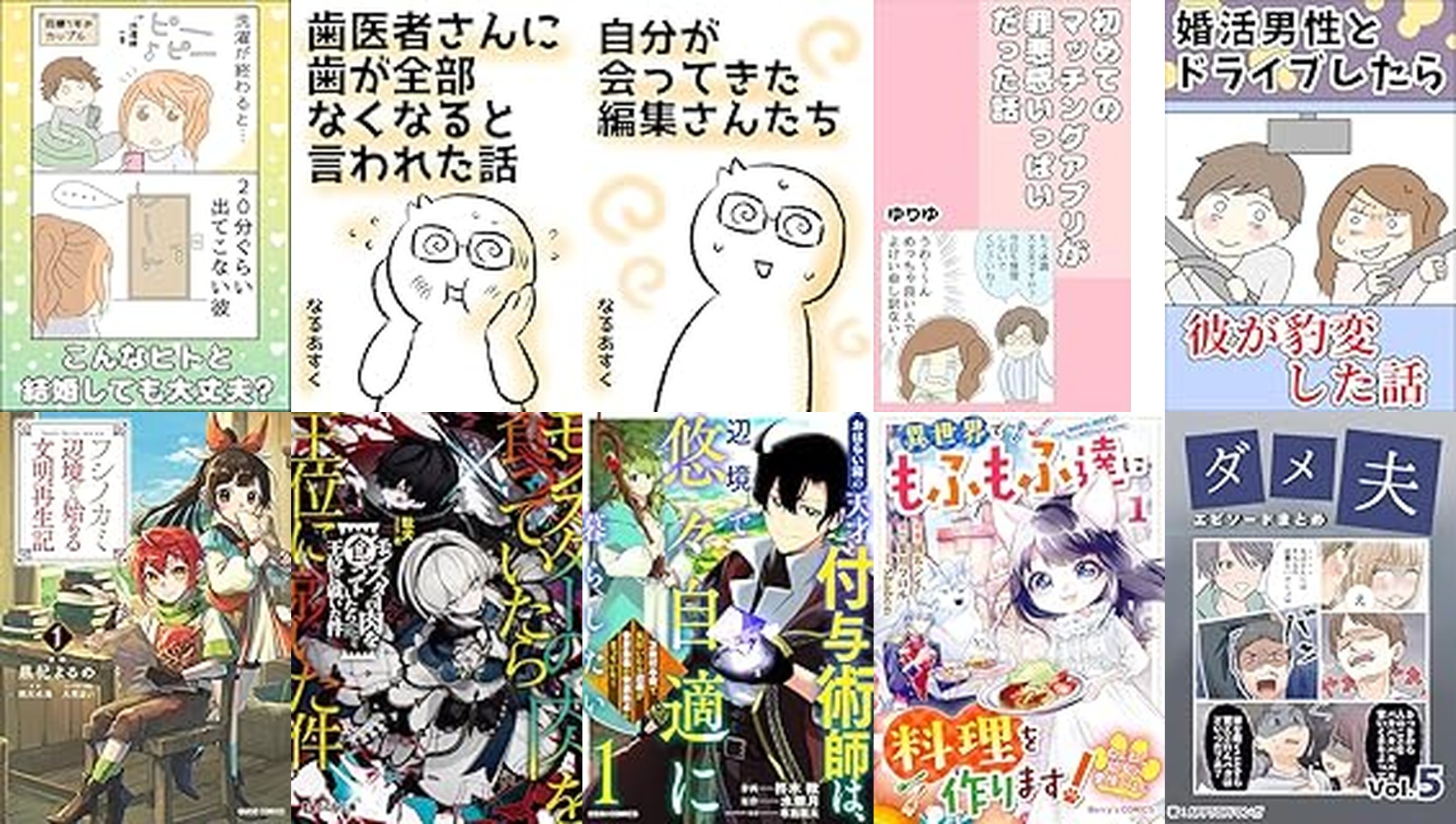 【99円以下】2026-01-31 Kindleコミック特集 Kindleセール情報 2026.01.31 【99円以下】2026-01-31 Kindleコミック特集 こんなヒトと結婚しても大丈夫? ゆりゆの婚活漫画集 ゆりゆ 0円 Amazonで詳細を見る 歯医者さんに歯が全部なくなると言われた話 漫画家なるあすくのエッセイマンガ集 なるあすく 0円 Amazonで詳細を見る 自分が会ってきた編集さんたち 漫画家なるあすくのエッセイマンガ集 なるあすく 0円 Amazonで詳細を見る マッチングアプリデビューが罪悪感いっぱいだった話 ゆりゆの婚活漫画集 ゆりゆ 0円 Amazonで詳細を見る 婚活で出会った男性とドライブしたら彼が豹変した話 ゆりゆの婚活漫画集 ゆりゆ 0円 Amazonで詳細を見る フシノカミ 1 ~辺境から始める文明再生記~ (ガルドコミックス) 黒杞よるの, 雨川水海, 大熊まい 0円 Amazonで詳細を見る モンスターの肉を食っていたら王位に就いた件 (GCN文庫) 駄犬, 芝 0円 Amazonで詳細を見る おはらい箱の天才付与術師は、辺境で悠々自適に暮らしたい~万能付与術で気付いたら辺境が世界最強の快適拠点になっていた~1巻 (グラストCOMICS) 柊木楸, 水無月, 布施龍太 0円 Amazonで詳細を見る ねこねこ幼女の愛情ごはん~異世界でもふもふ達に料理を作ります!~1巻 (Berry’s COMICS) 園太デイ, 葉月クロル, Shabon 0円 Amazonで詳細を見る 「ダメ夫」エピソード 傑作選⑤ APPTOPIマンガ 0円 Amazonで詳細を見る 魔女と傭兵 (GCN文庫) 超法規的かえる, 叶世べんち 0円 Amazonで詳細を見る 安心して結婚したはずなのに 読者さんの恋愛・浮気体験談 3cha 0円 Amazonで詳細を見る 体重123キロ→82キロになった話 漫画家なるあすくのエッセイマンガ集 なるあすく 0円 Amazonで詳細を見る コボルト無双、モフモフな最弱噛ませ犬だけど世界最強を目指す!(1) 赤志木ひの乃, shiba 0円 Amazonで詳細を見る 婚活はもはや趣味!?1 ゆりゆの婚活漫画集 ゆりゆ 0円 Amazonで詳細を見る 漫画家なるあすくの短編エッセイ集 漫画家なるあすくのエッセイマンガ集 なるあすく 0円 Amazonで詳細を見る ハイスペの俺様が地雷婚活男のハズがない ゆりゆの婚活漫画集 ゆりゆ 0円 Amazonで詳細を見る 信者ゼロの女神サマと始める異世界攻略 1 (ガルドコミックス) しろいはくと, 大崎アイル, Tam-U 0円 Amazonで詳細を見る まとわりついてくる同僚の話 こんかつみの漫画本 こんかつみ 0円 Amazonで詳細を見る 魔女と傭兵 2 (GCN文庫) 超法規的かえる, 叶世べんち 0円 Amazonで詳細を見る 「ダメ夫」エピソード 傑作選④ APPTOPIマンガ 0円 Amazonで詳細を見る 母と兄が一か月以内に急に亡くなった話 漫画家なるあすくのエッセイマンガ集 なるあすく 0円 Amazonで詳細を見る 奇行をくり返す彼氏と別れたい 読者さんの恋愛・浮気体験談 3cha 0円 Amazonで詳細を見る 僕の彼女が何かおかしい【前】 こんかつみの漫画本 こんかつみ 0円 Amazonで詳細を見る 婚活はもはや趣味!?2 ゆりゆの婚活漫画集 ゆりゆ 0円 Amazonで詳細を見る 40歳まで恋愛未経験の自分が3か月で結婚できた話 前編 漫画家なるあすくのエッセイマンガ集 なるあすく 0円 Amazonで詳細を見る 僕の彼女が何かおかしい【後】 こんかつみの漫画本 こんかつみ 0円 Amazonで詳細を見る 「お前ごときが魔王に勝てると思うな」と勇者パーティを追放されたので、王都で気ままに暮らしたい THE COMIC 1 (ライドコミックス) 南方純, kiki, キンタ 0円 Amazonで詳細を見る 自然な出会いってどこにある!? ゆりゆの婚活漫画集 ゆりゆ 0円 Amazonで詳細を見る 俺の死亡フラグが留まるところを知らない (1) 乙須ミツヤ, 泉 0円 Amazonで詳細を見る 転生して成長チートを手に入れたら、最凶スキルもついたのですが!?(1) やま, ゆずもと, 我美蘭 0円 Amazonで詳細を見る 29歳婚活女と39歳婚活男がマッチングしたら ゆりゆの婚活漫画集 ゆりゆ 0円 Amazonで詳細を見る